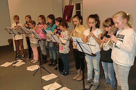 Flötenkids Carina, Anne, Laura, Lara, Luna, Marietta, Kerstin und Nils das