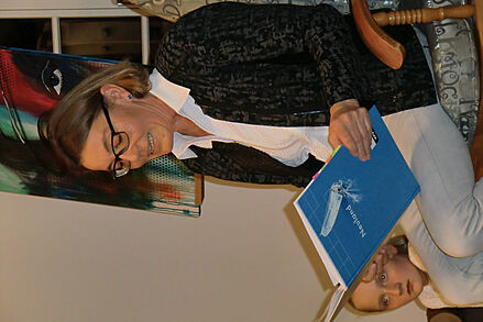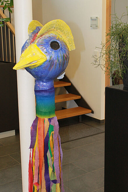 Elf Flötenkids um Michaela Rohkohl überraschten mit hervorragend einstudierten Ohrwürmern, die gelungenen Frauenportraits von Agnes Neumaier zierten die Wände und Autorin Christine Störr sorgte mit Gedichten und Geschichten mit Tiefgang für Gänsehautfeeling. Schon der große, von Künstlerin Agnes Neumaier bunt-getöpferte prächtige Vogel, der die Gäste im Foyer des Rathauses begrüßte, war ein ganz besonderer Blickfang. Flackernde Kerzen, bebilderte Staffeleien und bunt beschriftete Spiegel begleiteten dann bis hoch unter das Dach des Rathauses, in den spätherbstlich geschmückten Bürgersaal.