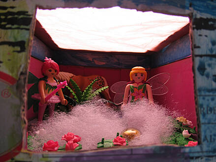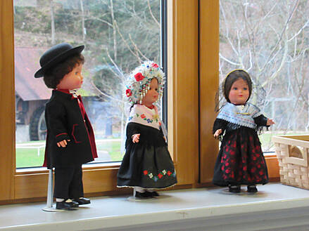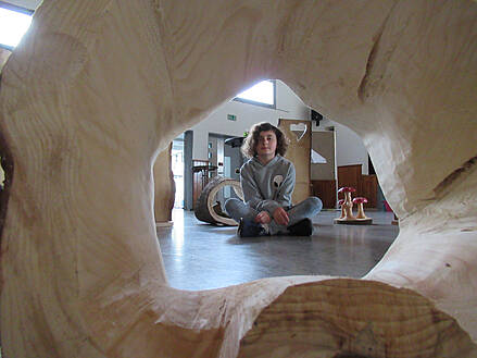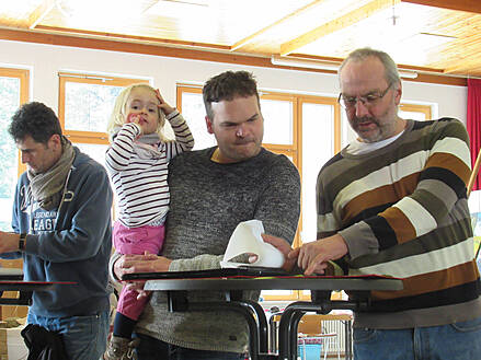 Guck-Kästen der Schüler neben der dekorativen Holzkunst von Familie Josef