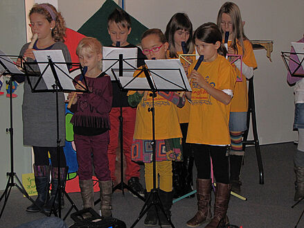»Flötenkids« um Michaela Rohkohl begleitet.