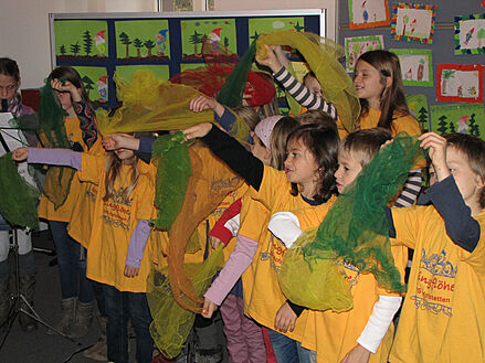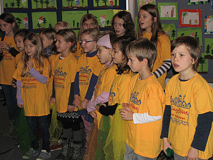 die »Singflöhe« unter der Leitung von Lehrerein Michaela
