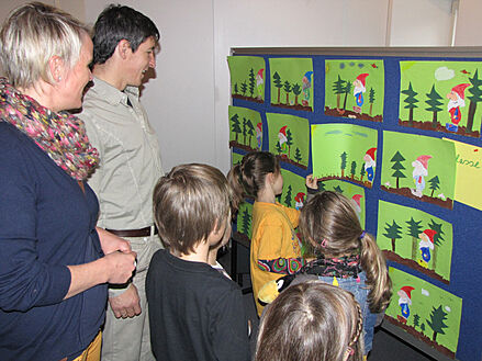 Zweite »Kunst im Dorf«-Veranstaltung für Kinder mit dem "Waldwichtel Hademar", tollen Kunstwerken und viel Musik im Bürgersaal.