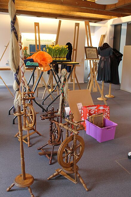 Organisatorin Christine Störr hatte in mühevoller Kleinarbeit alte Bilder unterschiedlicher Designs und Größen sowie "altertümliche" Accessoires aus längst vergangenen Zeiten in Hofstetten zusammengesammelt. Am Brunnen vor dem Tore, Kein schöner Land in dieser Zeit, Es steht eine Mühle im Schwarzwälder Tal, Wenn alle Brünnlein fließen – passend zum Motto begrüßten die "Singflöhe" um Michaela Dilger-Gstädtner mit zahlreichen alten Volksweisen die Gäste, die sich am Samstagnachmittag zur Ausstellungseröffnung im Foyer des Rathauses eingefunden hatten.