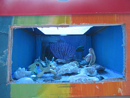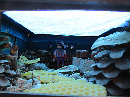 Guck-Kästen der Schüler neben der dekorativen Holzkunst von Familie Josef