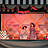 mit ihren Freundinnen, die aufwendige Karten und Dekorationen ausstellten.