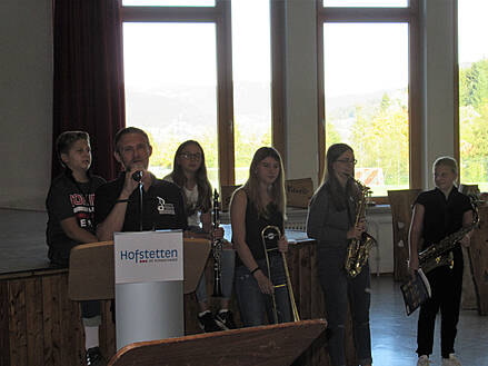 Jungmusiker um Stefan Kaspar beteiligten sich am Samstag mit einem Vorspiel