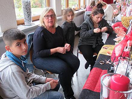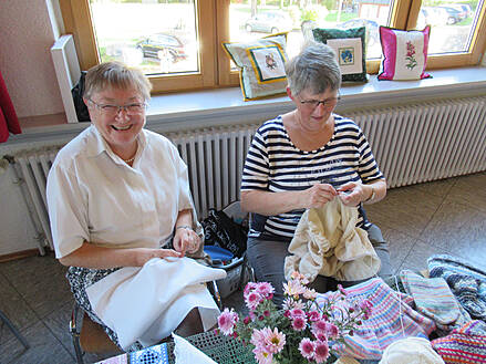 zeigten ihre Strick-Arbeiten und hatten große Patchwork-Decken aufgehängt, von
