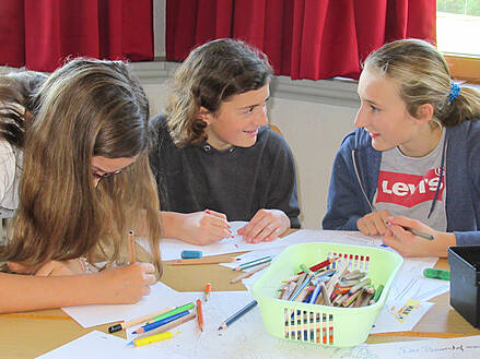 Schüler, mit denen auch der Außenbereich entlang des Baches bunt dekoriert und durch